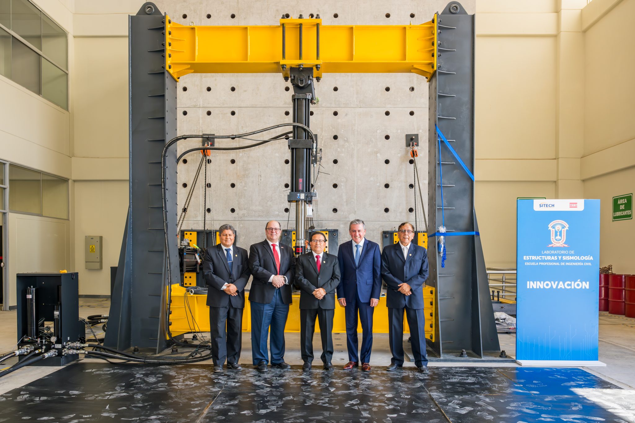 El laboratorio, equipado con tecnología MTS, cuenta con un avanzado simulador de sismos, logrando velocidades de hasta 1 metro por segundo, desplazamientos de hasta 250 milímetros y frecuencias de hasta 50 Hz, con especímenes de hasta 10 toneladas.