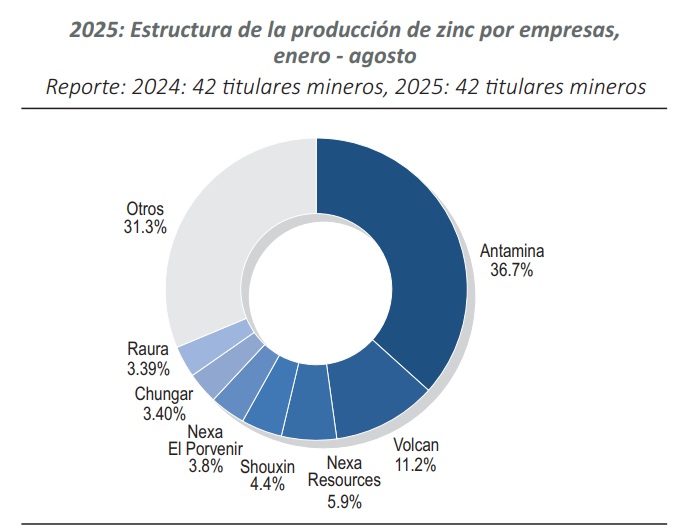 En segundo y tercer lugares se ubicaron Volcan Compañía Minera S.A.A. y Nexa Resources Perú S.A.A. con contribuciones del 11.2% y 5.9%, respectivamente.