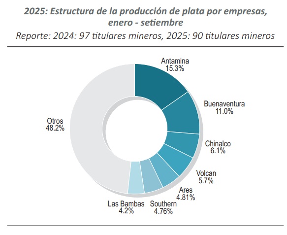 Minera Chinalco Perú S.A. ocupó la tercera posición con una contribución del 6.1% a la producción argentífera nacional.