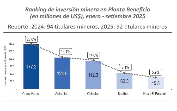 Este desempeño reafirma su rol estratégico en la modernización de la infraestructura de procesamiento mineral, al concentrar 19.7% de la inversión total ejecutada en el periodo.