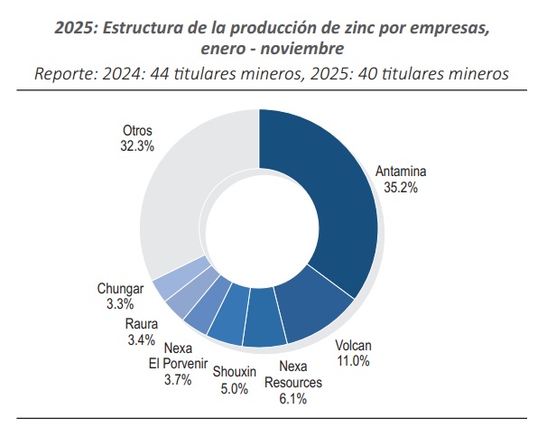 Antamina lidera producción de zinc peruano a noviembre con el 35.2% del total