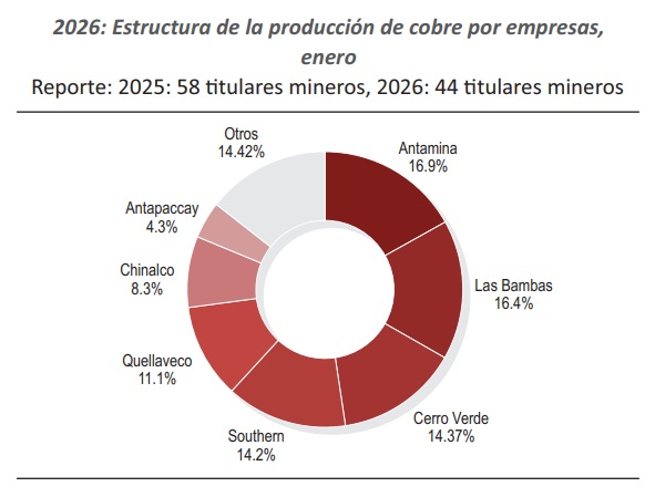 Los tres titulares representaron en conjunto el 47.6% de producción del cobre peruano.
